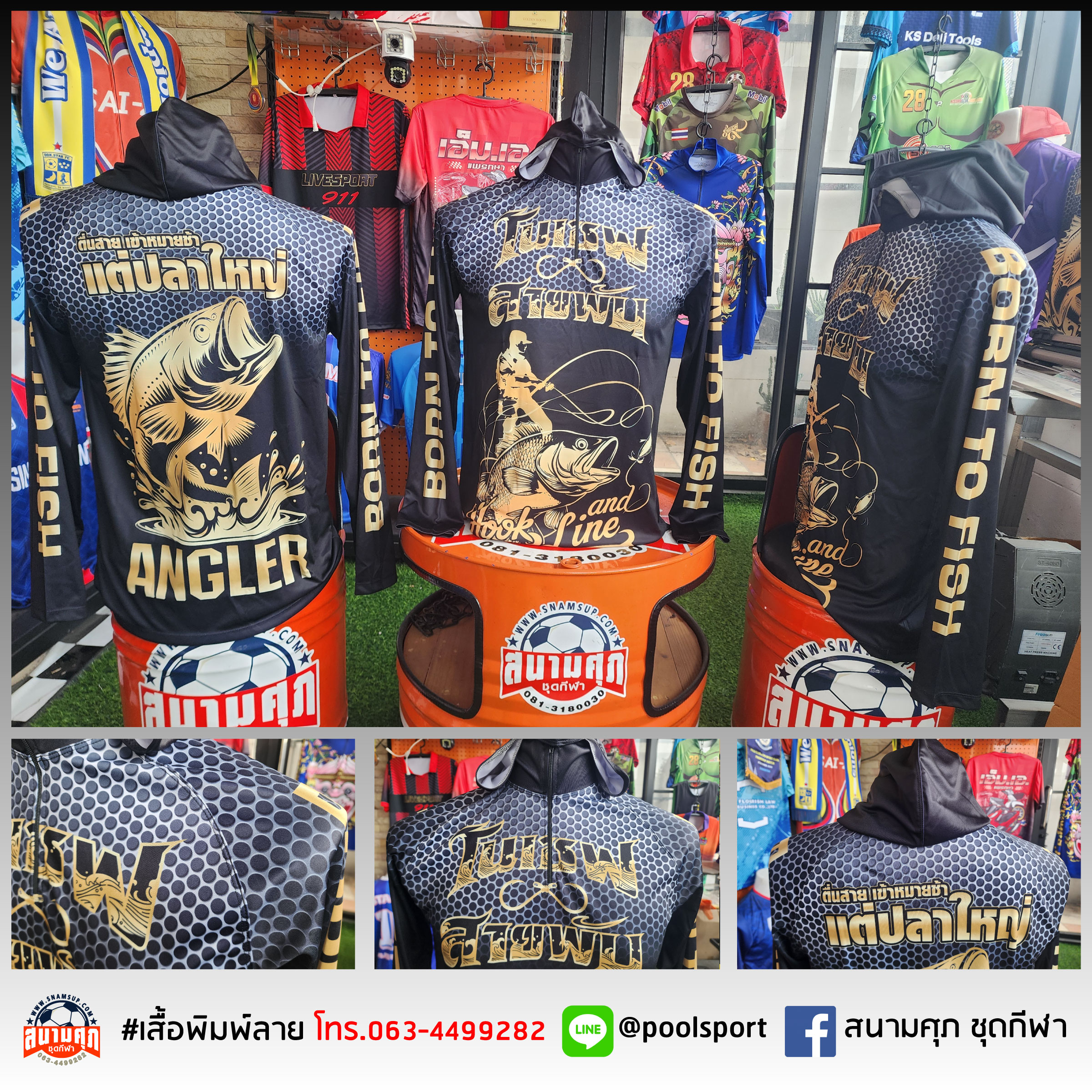 เสื้อตกปลา ออกแบบได้ตามจินตนาการ ใส่ชื่อทีม ชื่อสมาชิก และภาพได้ ไม่จำกัดการพิมพ์ ผ้าไมโครโพลีเอสเตอร์ 100%, ป้องกันแสง UV 70% เลือกขนาดเสื้อได้ ตั้งแต่เด็ก(24 นิ้ว)-60 นิ้ว ราคาเท่ากันทุกไซต์ บริการจัดส่งทั่วประเทศ
